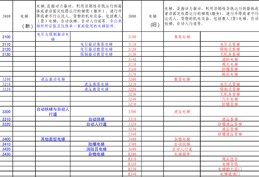 電梯特種設備目錄(2014版新舊對照表)