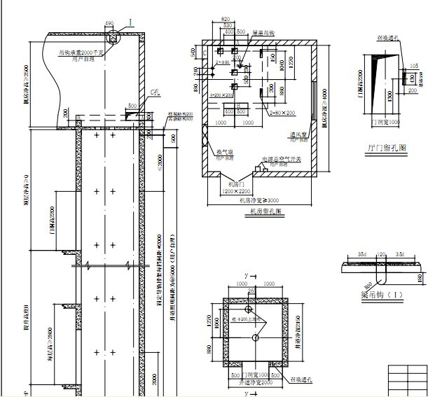 四是要注意機房地面的留洞和頂面的吊鉤,還有機房門的凈寬要求和通路要求。